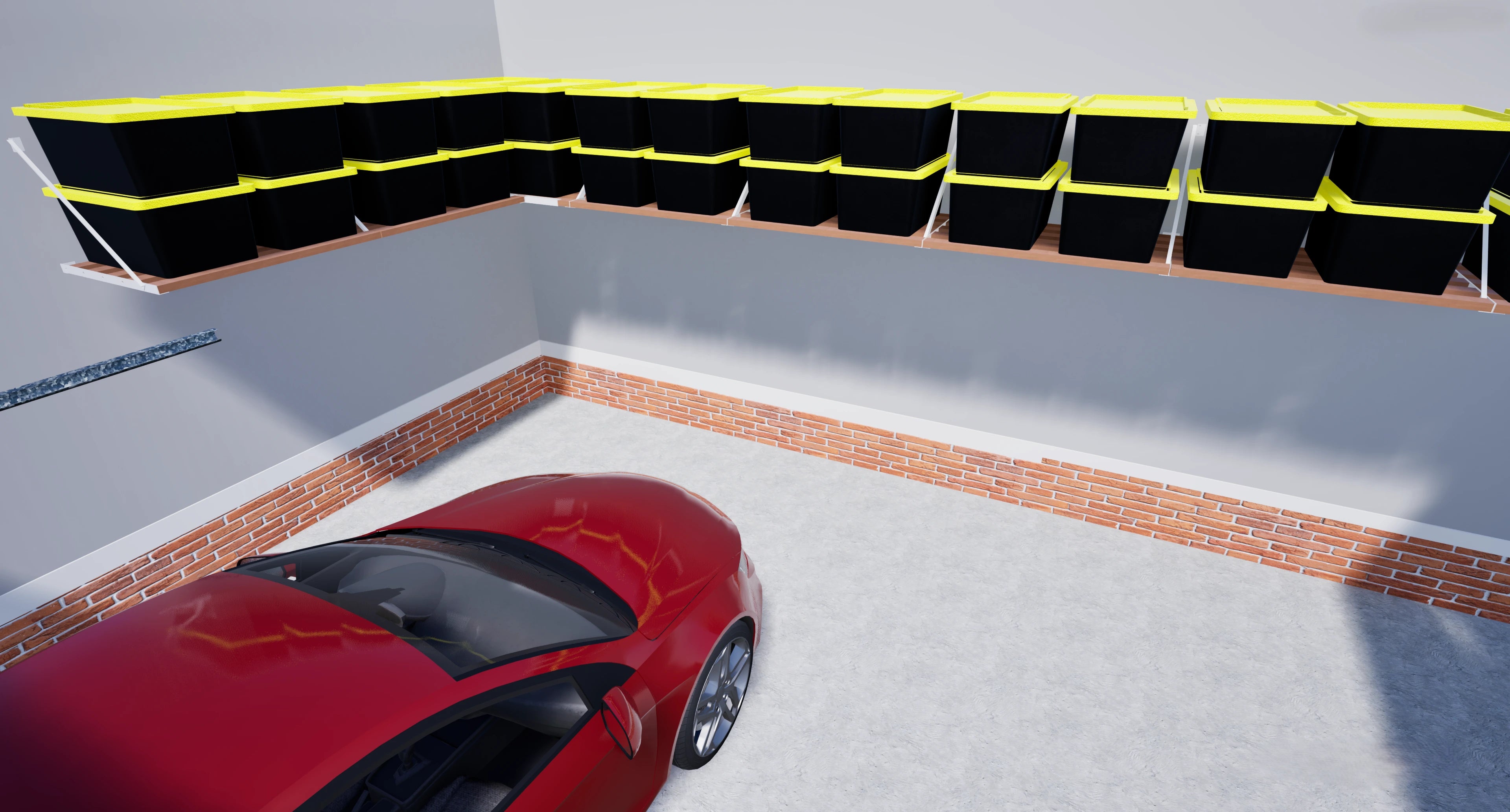 A free design for your exact garage? Absolutely! Send us a few pictures of your garage and we will send you a custom 3D drawing with Top Tier Shelving installed digitally. This service is 100% free.